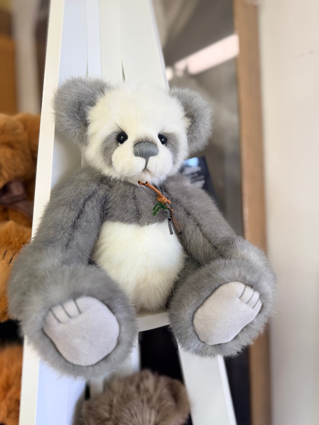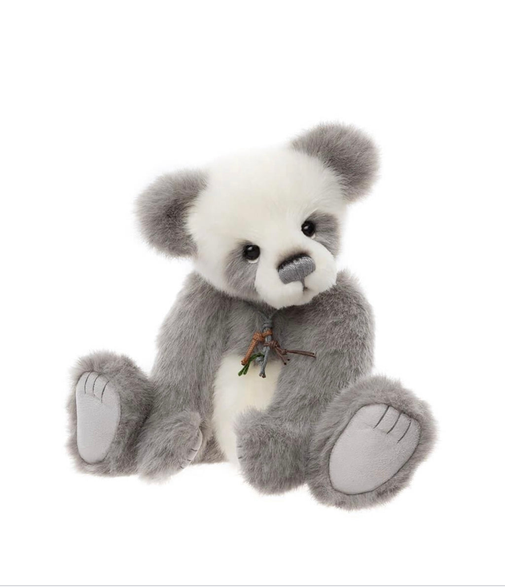 Meet the delightful Anniversary Bronte, a Charlie Bears Exclusive plush panda, lovingly inspired by the original 2007 Secret Collection panda, Bronte. Created to celebrate our 20th Anniversary, this special panda is a tribute to two decades of bear-making magic. Bronte is made from luxuriously soft short-pile plush fur in shades of grey and white and features exquisite hand-embroidered detailing on the nose, mouth, and tickly toes. Finished with a sweet necklace accessory, this panda is as adorable as it is timeless. Suitable for ages 3 years +. Panda height: 29cm/11.5”/9.7 Bear Paws.